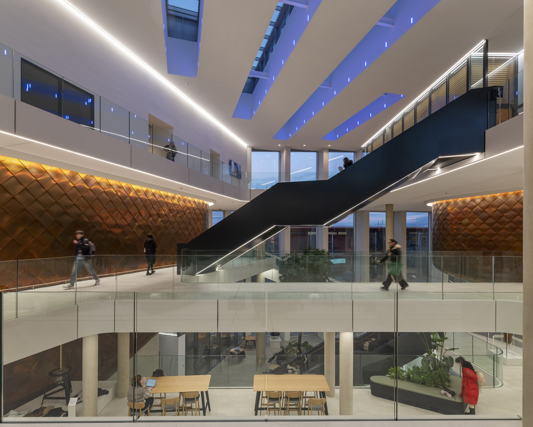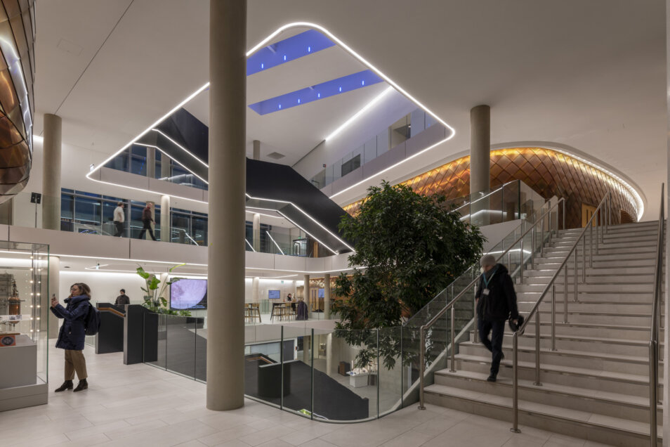 Working in close collaboration with architects Jestico + Whiles, StudioFractal are developing comprehensive Lighting Designs for the famous Cavendish Laboratory at the University of Cambridge. Replacing the existing Department of Physics facilities, the new facility will comprise - advanced equipment for over 15 research groups in theoretical and experimental physics, extensive teaching and learning spaces, including a 409-seat lecture theatre, resource centre, outreach and exhibition spaces, common room and various collaborative working areas for researchers and students. The lighting designs integrated throughout the new building are designed to complement and enhance the architectural language, encourage collaboration and communication, and support the cutting-edge research on site.
